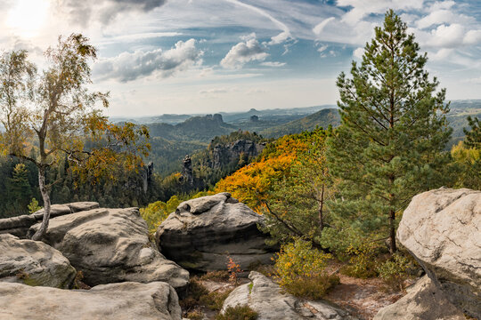 Carolafelsen : Meditation Am Carolafelsen Forum Fur Naturfotografen - View from carolafelsen into the elbe sandstone mountain ranges to the east, saxon switzerland transitions into the lusatian highlands and, to the west, into the ore mountains.